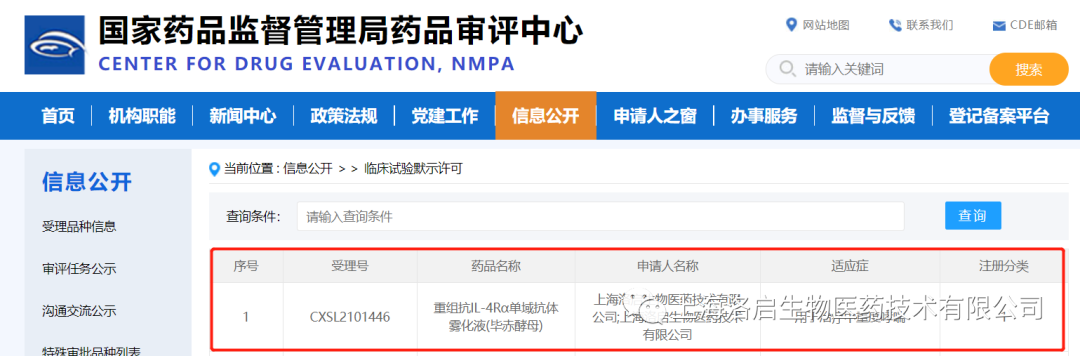 2022年01月26日,中国国家药品监督管理局药品审评中心(CDE)公示,上海金年会jinnian生物医药技术有限公司一款针对中重度哮喘治疗的核心药物LQ036——重组抗IL-4Rα单域抗体雾化液(毕赤酵母)的临床试验申请(IND)正式取得批准(通知书编号:2022LP00124),从IND受理到获批仅用2个月,此间无发补项。